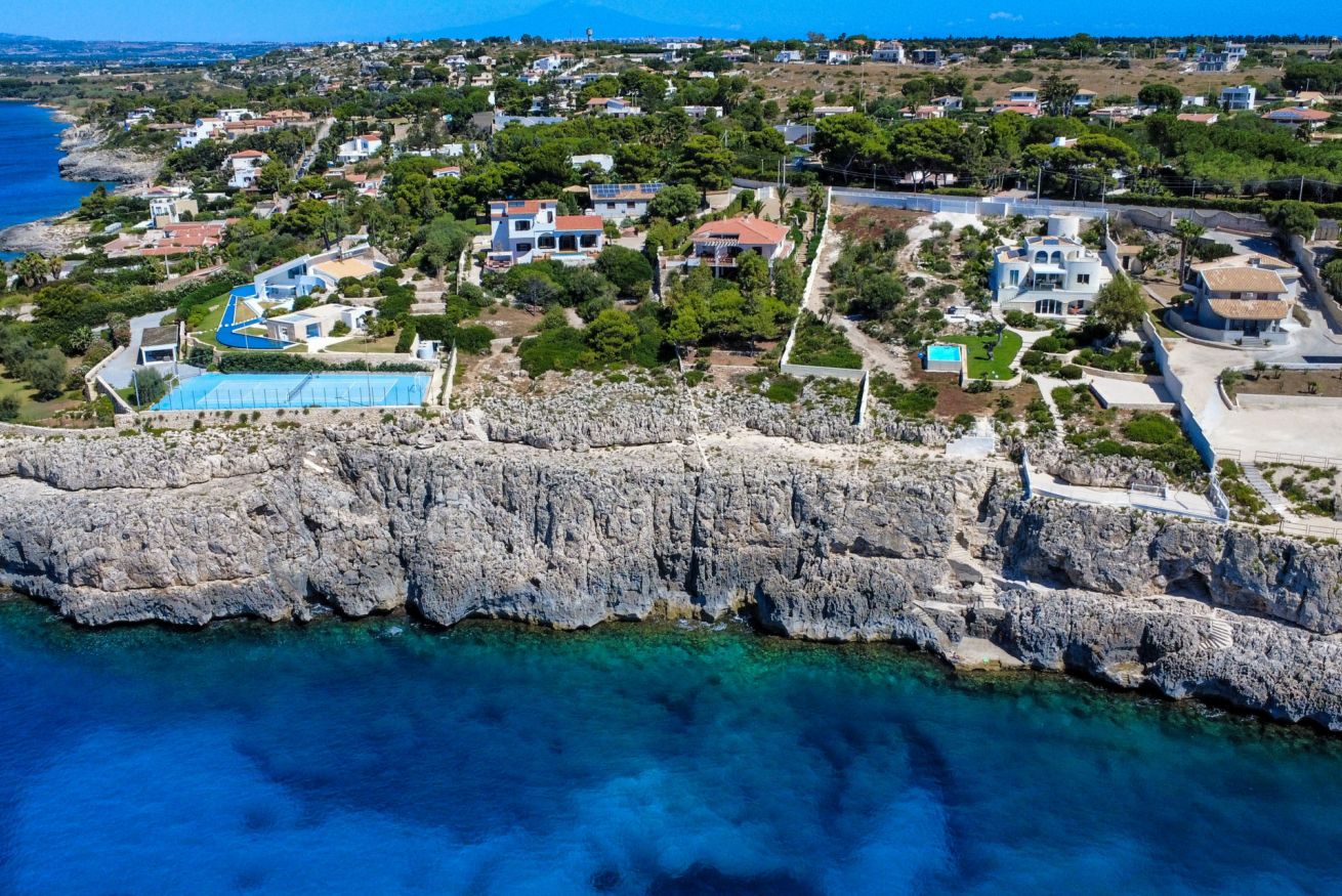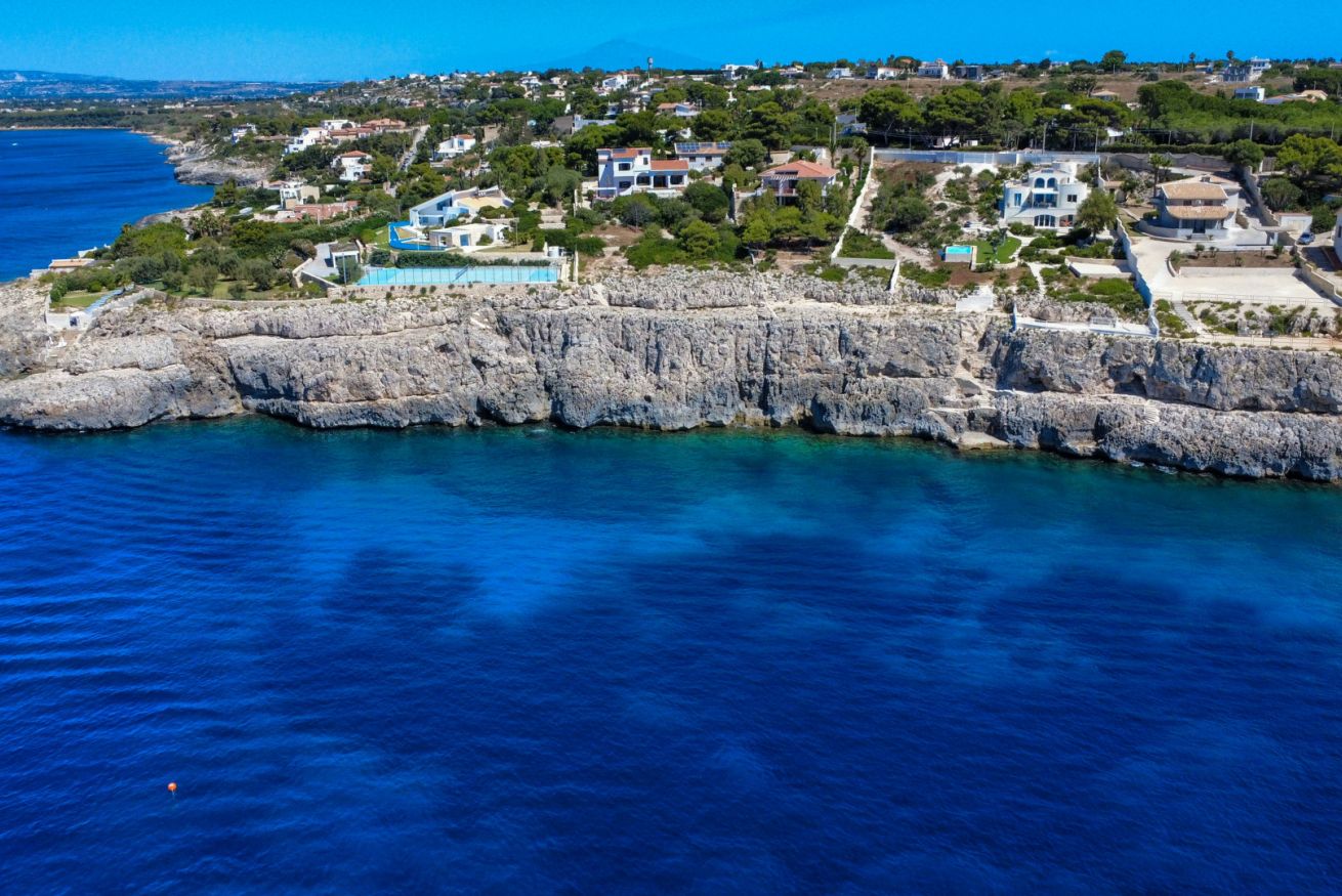 Affacciata sulla stupenda scogliera della Riserva Naturale del Plemmirio, nei pressi di Siracusa, questa splendida villa fronte mare è un rifugio ideale dove macchia mediterranea e mare cristallino si fondono armoniosamente. La proprietà conserva una suggestiva grotta naturale, una veranda con vista sul mare e una piscina a sfioro che sembra unirsi all’orizzonte. Questo angolo di paradiso è il luogo perfetto dove godersi il fascino dei tramonti siciliani a contatto col mare e in piena privacy.